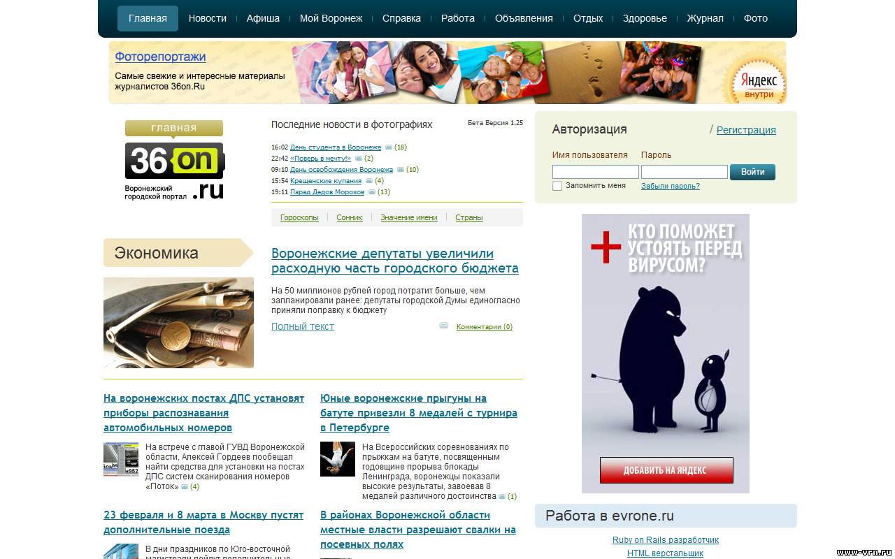 36on.Ru — это крупный портал для работы, отдыха и общения жителей Воронежа.