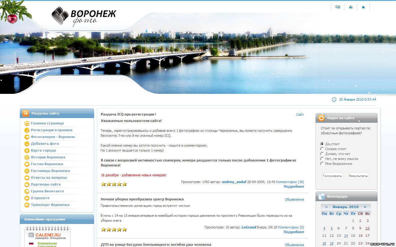 Сайт "Воронеж-фото" является крупнейшим в Рунете порталом с фотографиями Воронежа. В базе сайта загружено более 700 фотографий, включая современные и исторические снимки.